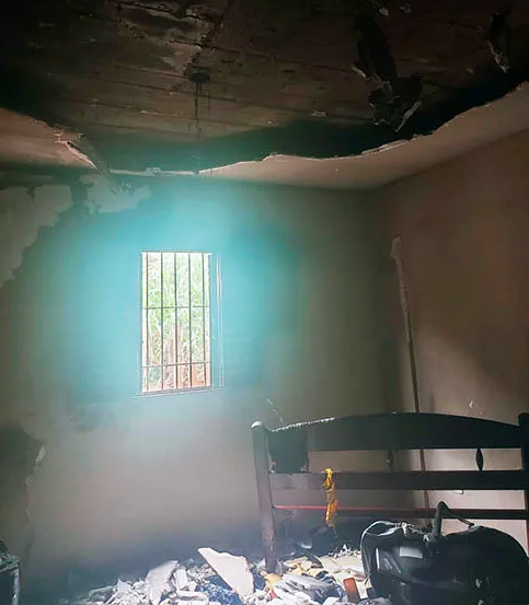 As chamas destruíram um sofá que estaria no quarto de casal, uma TV de 14 polegadas, e ventilador. Também foram danificados os bocais de lâmpadas do quarto e sala, as instalações elétricas e tomadas. Os Bombeiros informaram também queda de parte do teto de gesso.