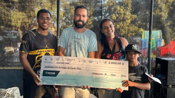 O segundo maior prêmio – R$ 5 mil – em caderneta de poupança do Sicoob Coopemata saiu para dois ganhadores de Cataguases: Anthony Minelli, residente no Bairro Paraíso, e Luana Roberta de Oliveira Campos, do Bairro Justino. Eles dividiram o prêmio, cabendo a cada um R$ 2.500,00.