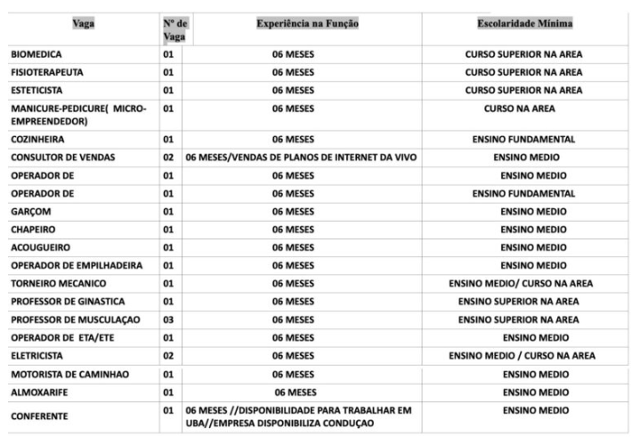 O Sine Cataguases divulgou nova relação e vagas de trabalho em diversas áreas. Há opções para quem tem curso superior completo; para manicure, cozinheira e chapeiro, entre outras oportunidades.