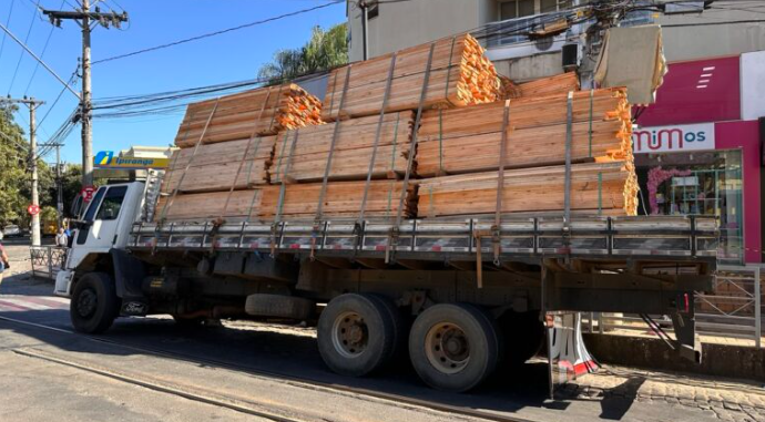 Um caminhão, carregado com tábuas de eucalipto, quebrou em frente ao Bevile Hotel, região central de Cataguases, na manhã da quinta-feira (20 de junho). O trânsito ficou lento naquela área e exigiu maior atenção dos motoristas. Apenas o condutor estava no veículo e não se feriu.
