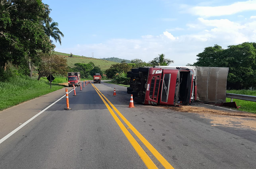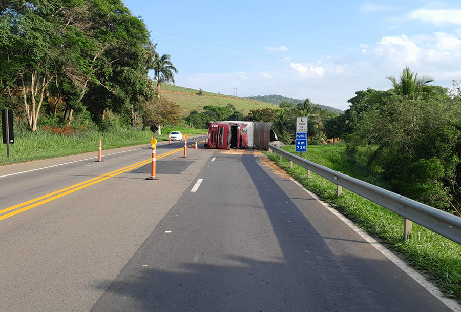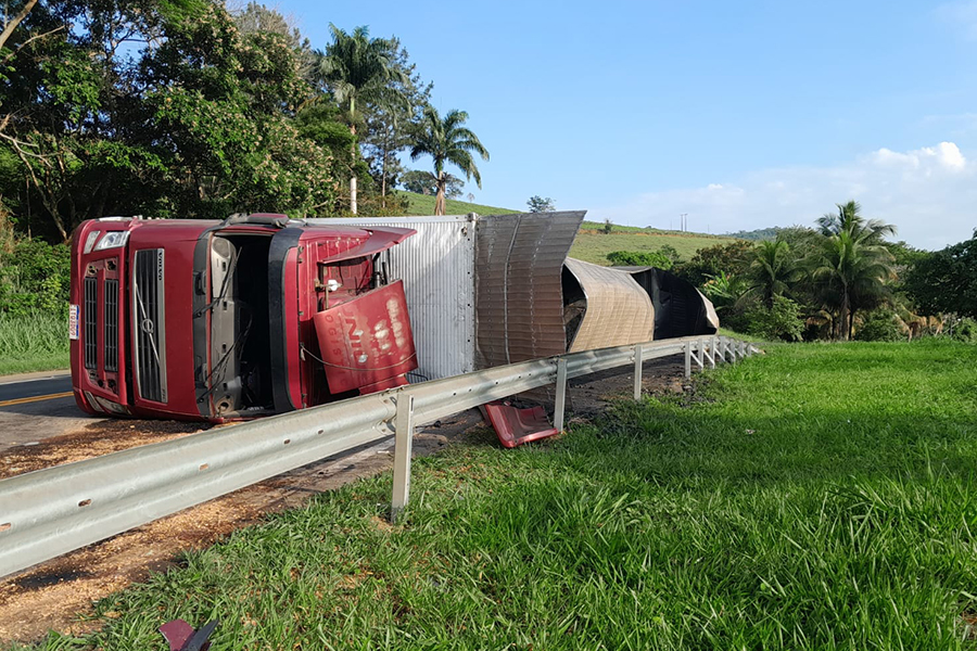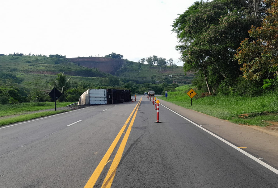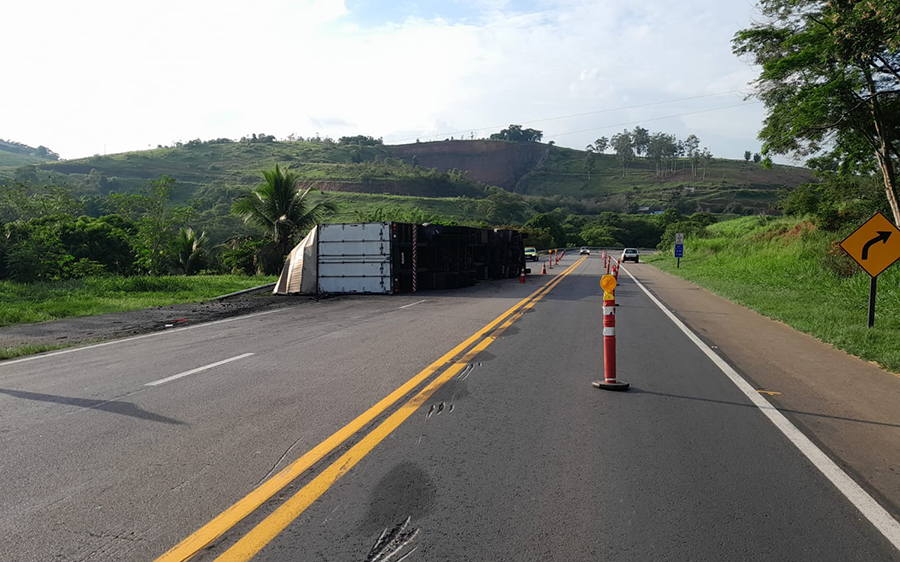 A carreta invadiu a contramão de direção e tombou sobre a faixa de rolamento. O motorista sofreu lesões de natureza leve na região do braço esquerdo e foi levado para atendimento médico no Hospital de Laranjal onde permaneceu em observação.