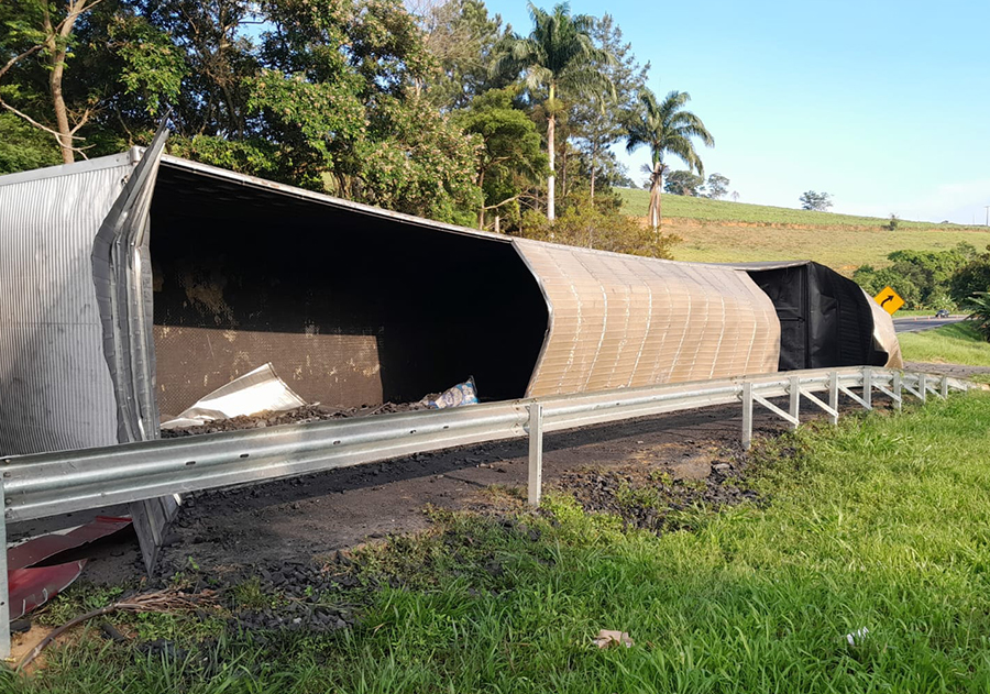 Na noite do domingo (03 de dezembro, às 19h45, foi registrado pela Polícia Rodoviária Federal de Muriaé um acidente de trânsito envolvendo uma carreta do tipo baú carregada com carvão vegetal que vinha da Bahia e tinha como destino a cidade do Rio de Janeiro.
